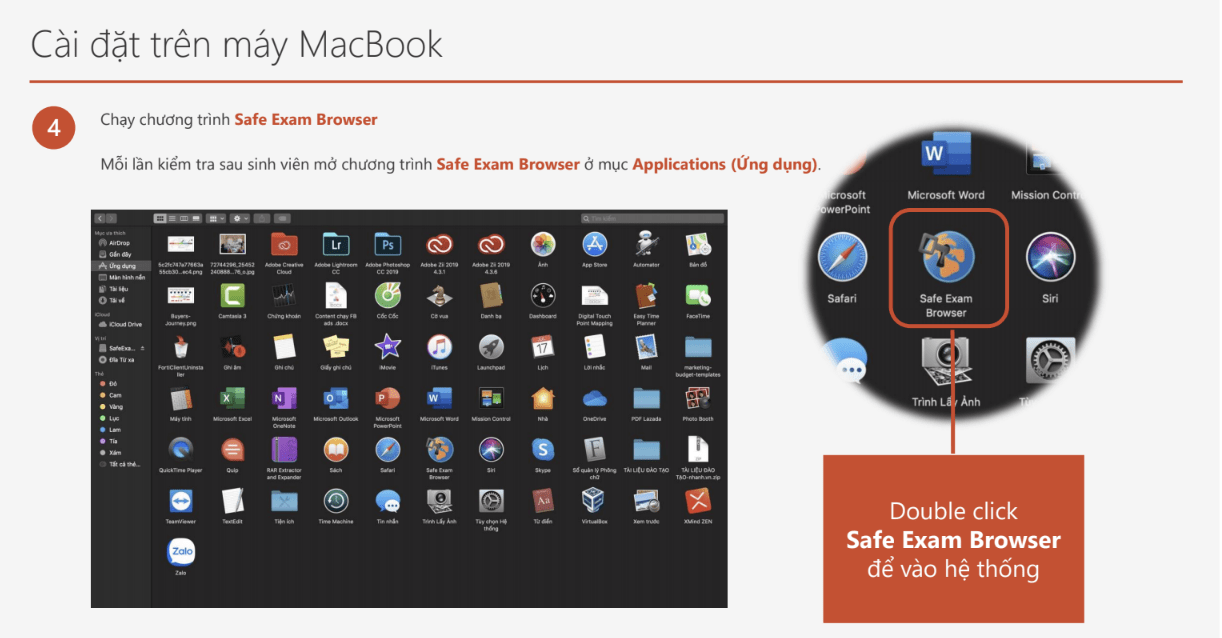 Cách mở phần mềm: Vào LauchPad, hoặc mực mục Ứng dụng Application, tìm Safe Exam Browser