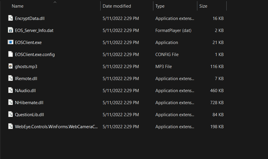 - Lưu ý: File EOSClient.exe chỉ chạy được khi nằm trong thư mục ban đầu. Không copy/kéo file ra ngoài sẽ không khởi động được phần mềm thi.