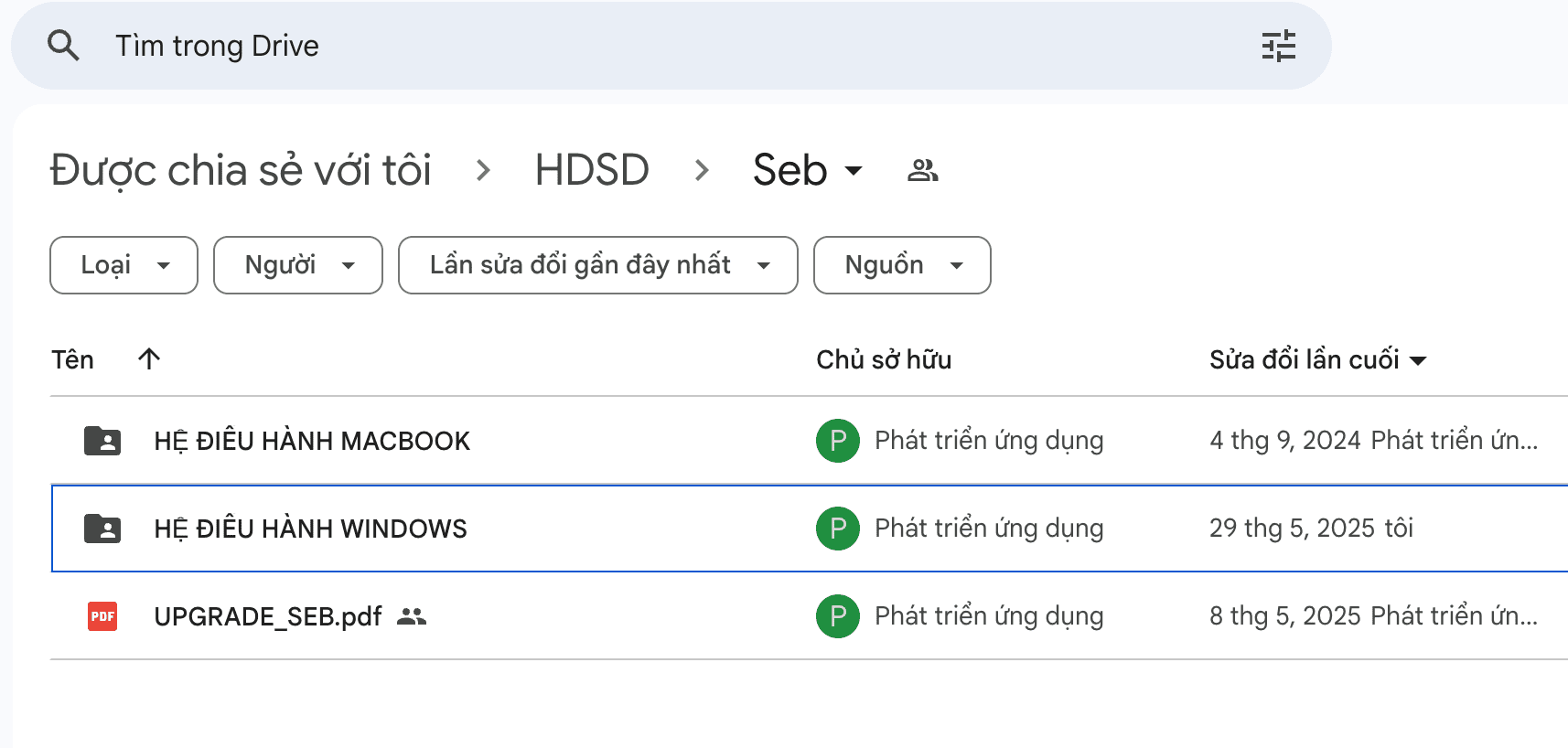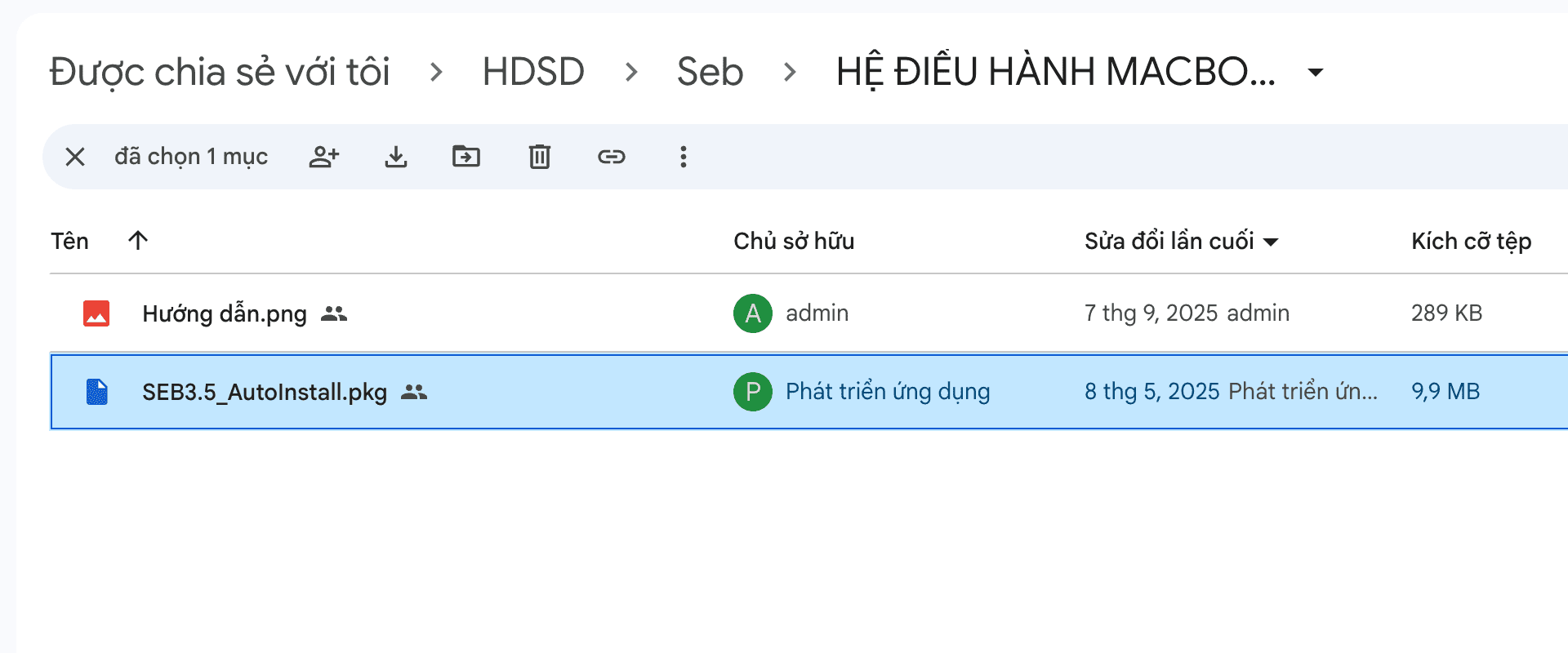 Bước B.1: Sinh viên tải file “SEB3.5_AutoInstall.pkg” trong thư mục “Hệ điều hành MacBook” như hình
