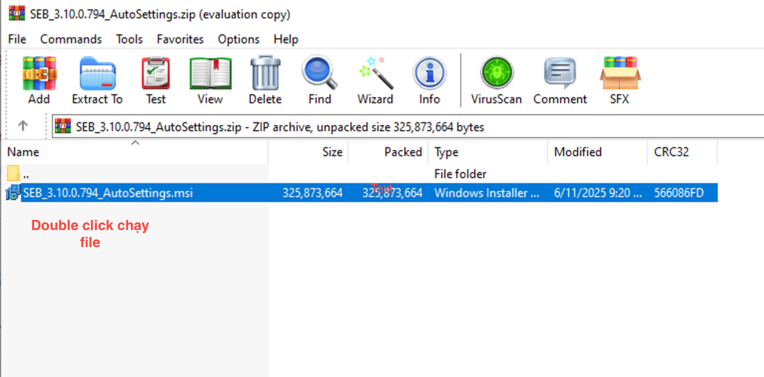 Bước A.1: Sinh viên tải file cài đặt “SEB_3.10.0.794_AutoSettings.zip” trong thư mục “Hệ điều hành Windows” như hình