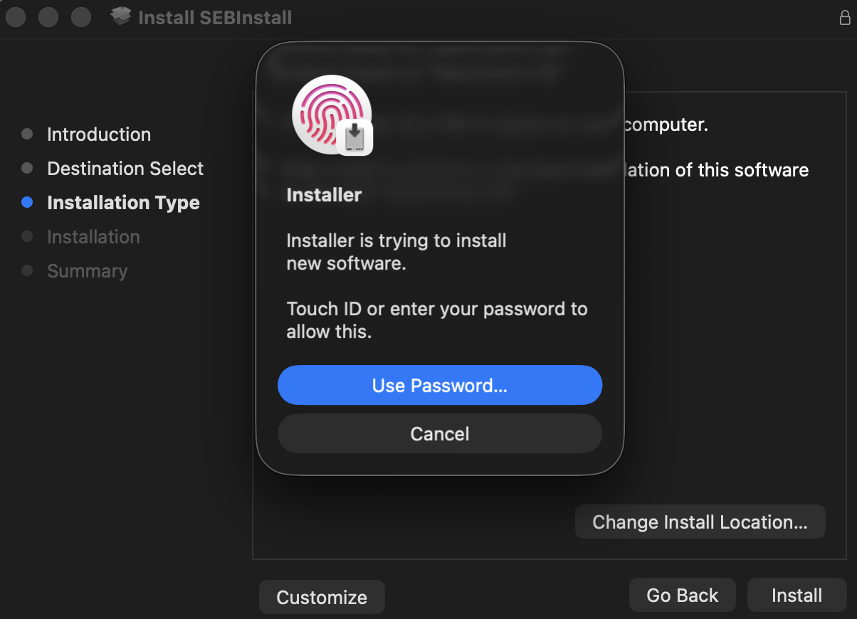 Nhập mật khẩu hoặc xác thực vân tay để cài đặt